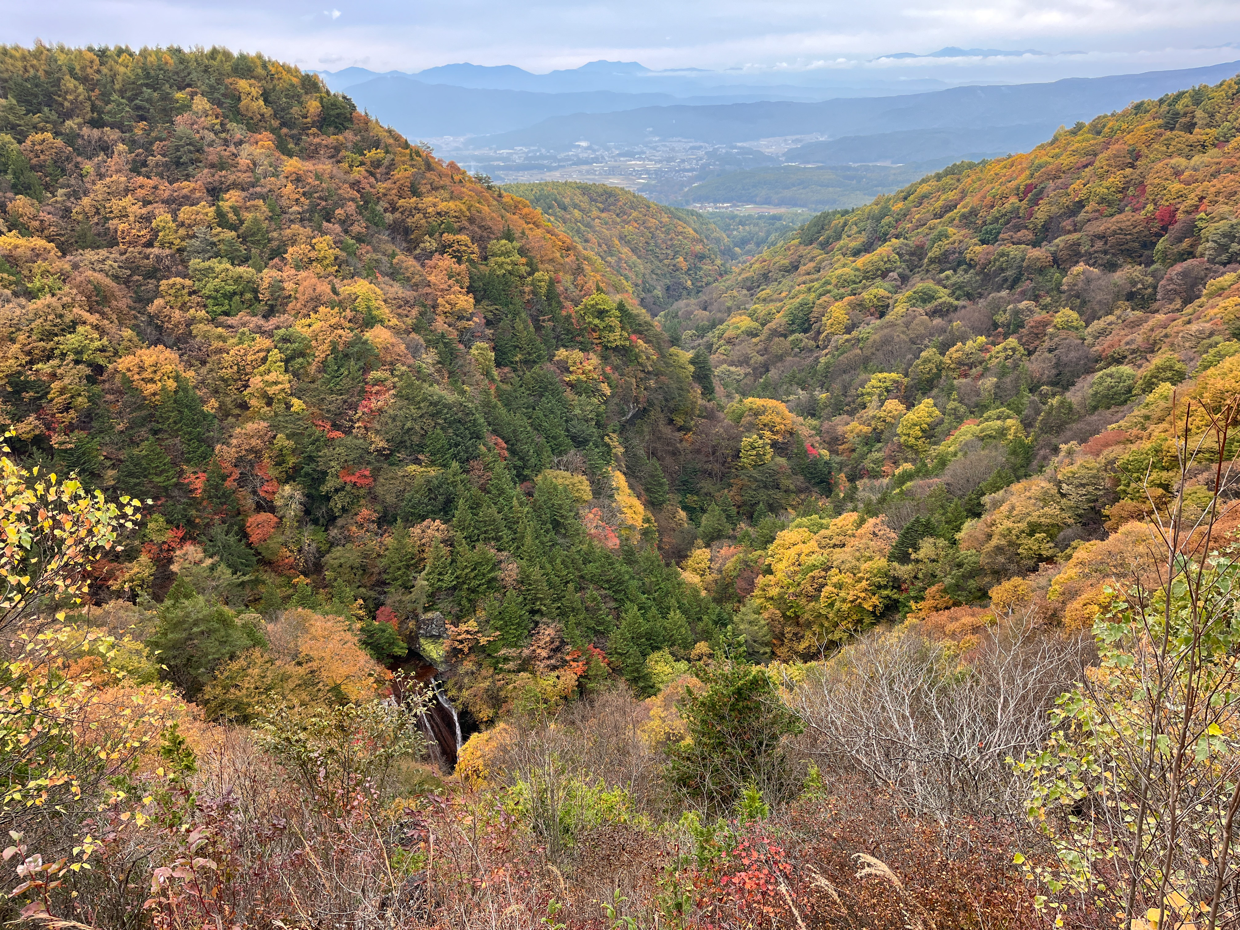 錦秋の横谷峡(2025.10.31) 茅野の紅葉 蓼科 蓼科中央高原 蓼科中央高原・横谷峡の紅葉がほぼ見頃となりました。横谷観音展望台からは錦秋の渓谷が眼下に広がります。 横谷観音周辺はピーク過ぎで落葉が始まっています。 駐車場入口のモミジの回廊は一部色づき始めています。