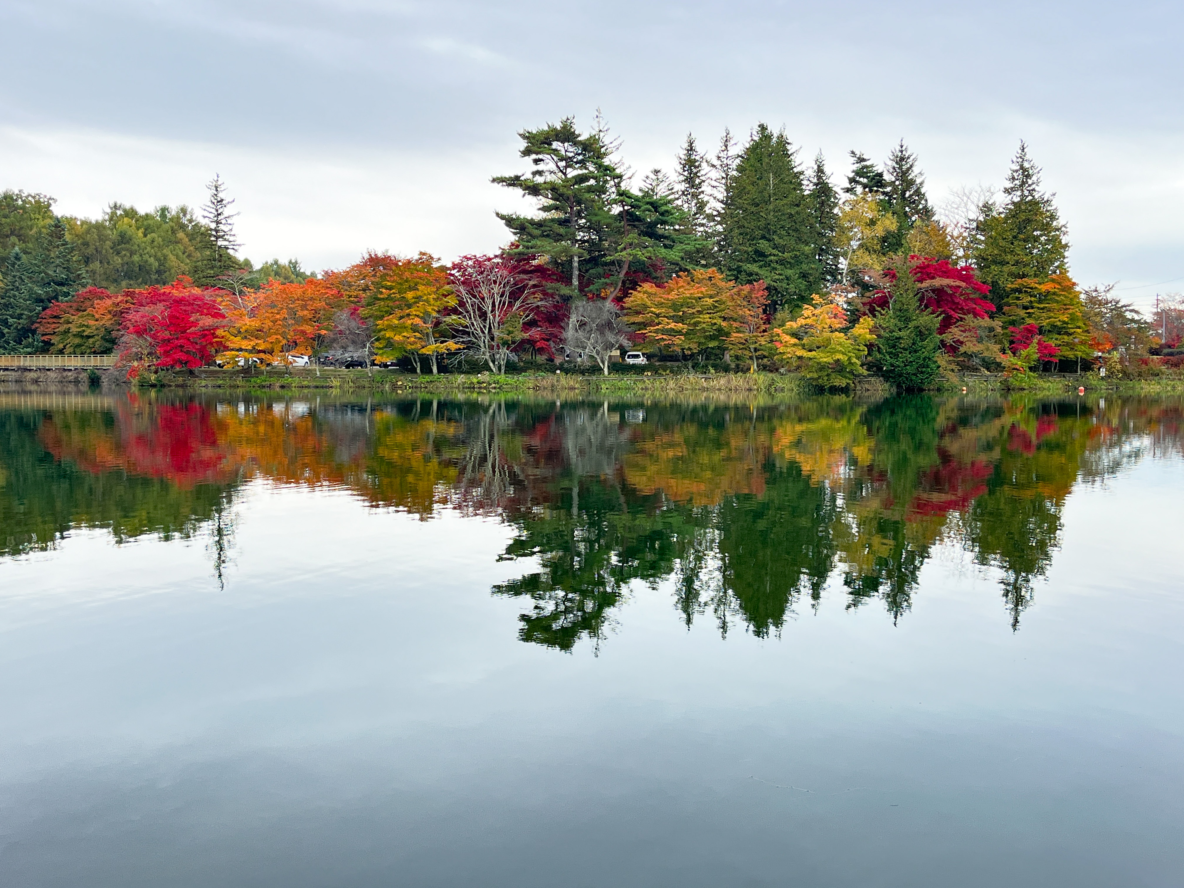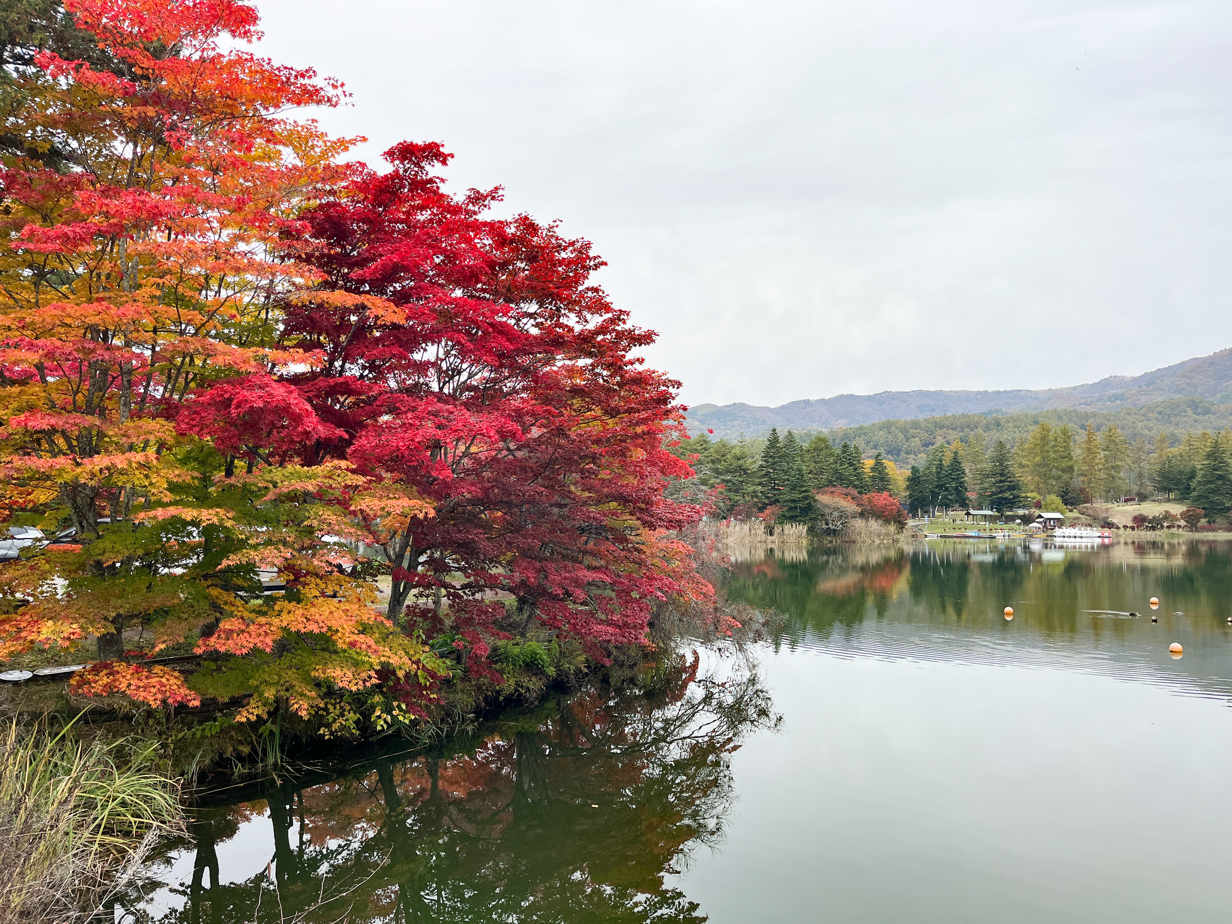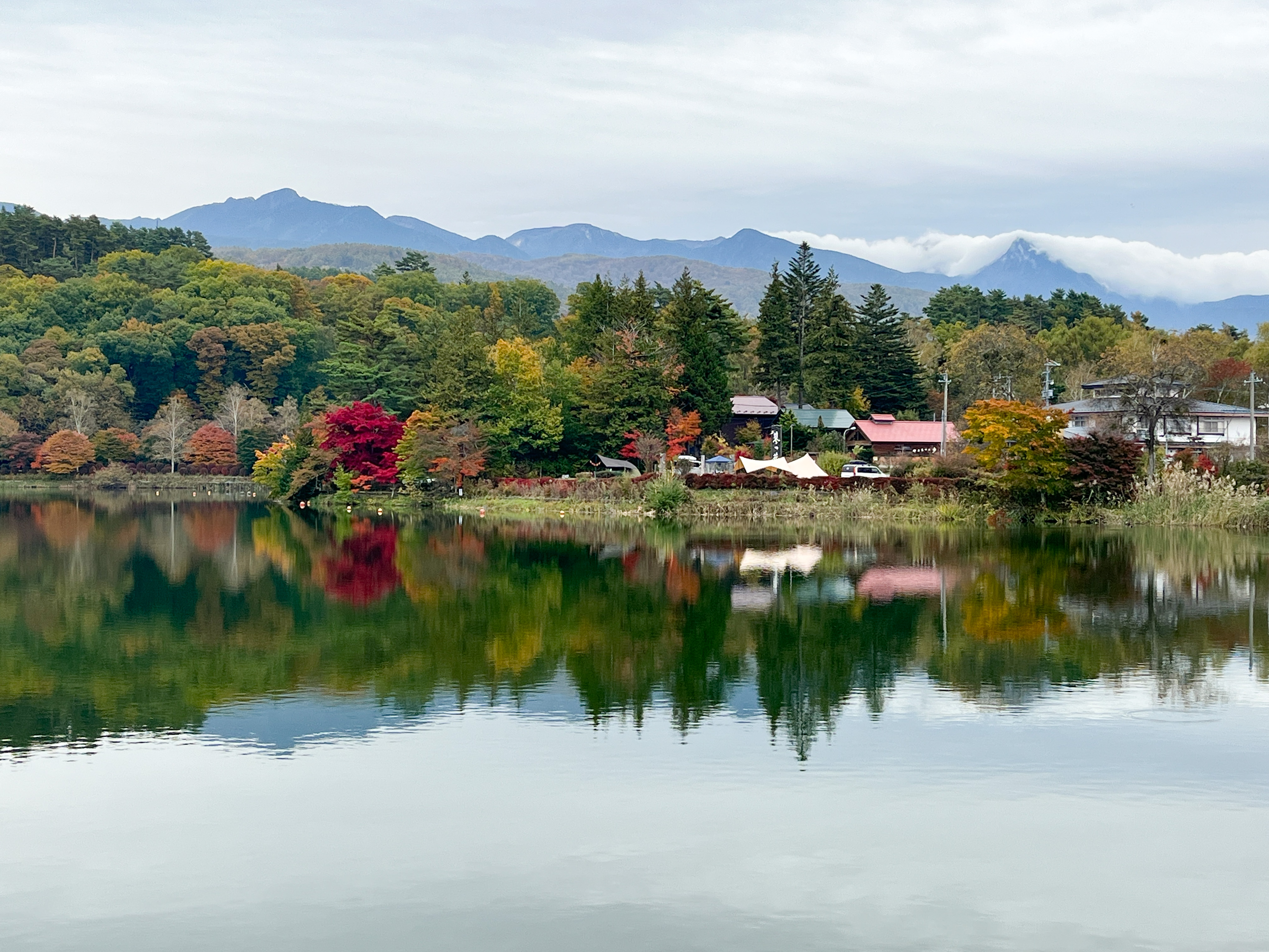 標高1250m、蓼科湖畔では紅葉が見頃になりました。今日は風もなく奇麗な水鏡を見ることができました。来週いっぱい位は楽しめそうです。